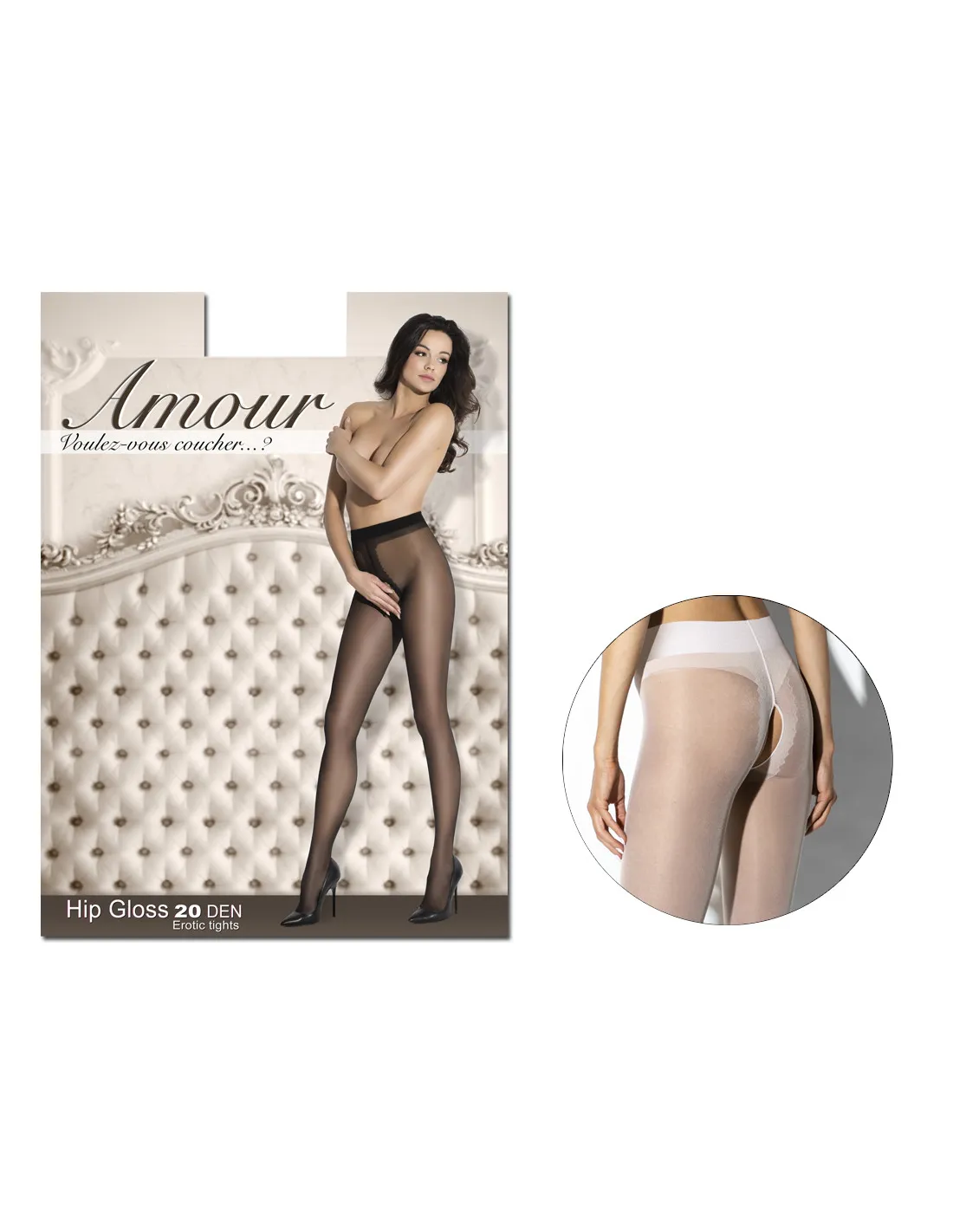 Lesklé punčocháče Hip Gloss 20 DEN s dírou v rozkroku – bílé okouzlující punčocháče