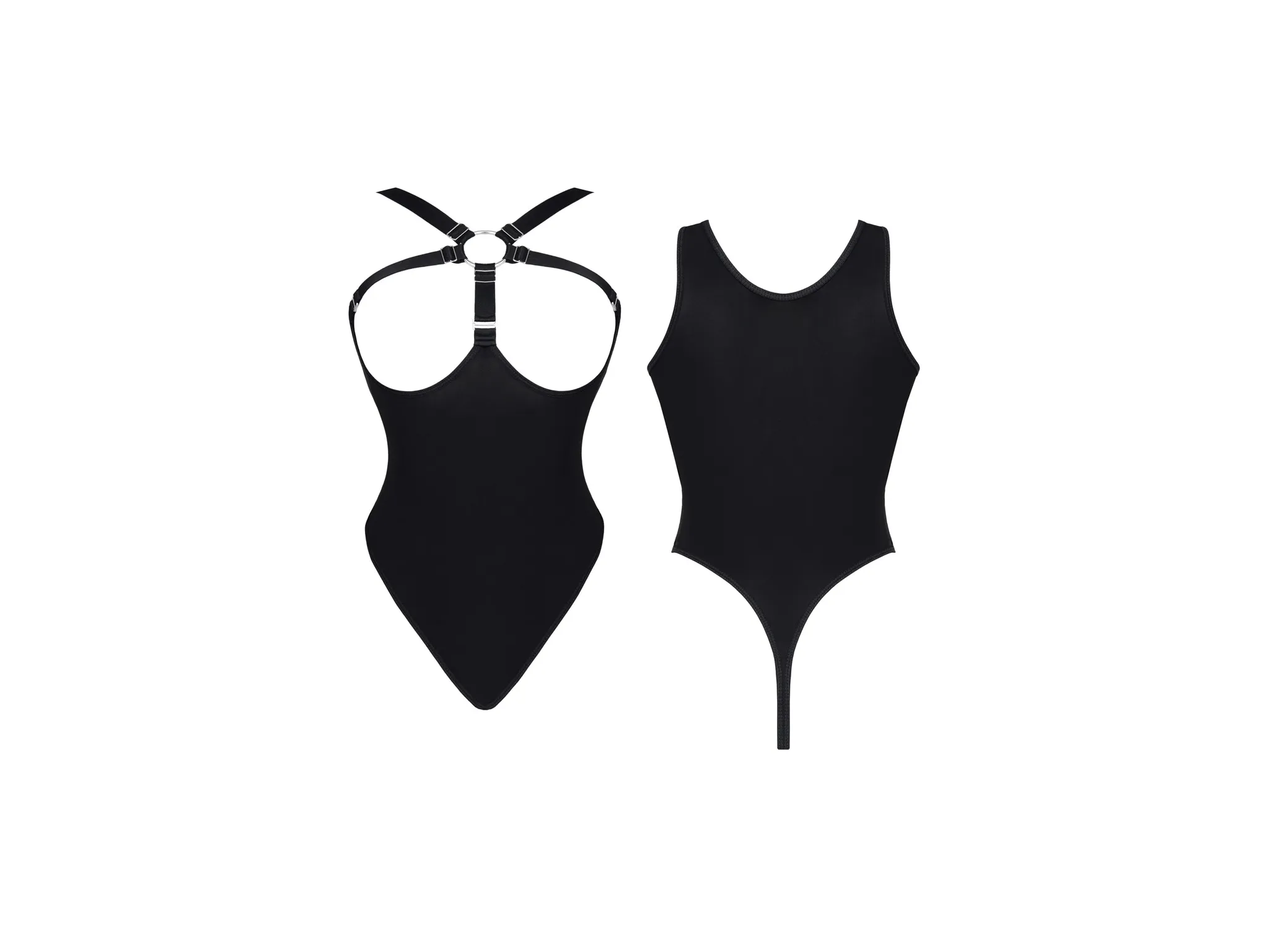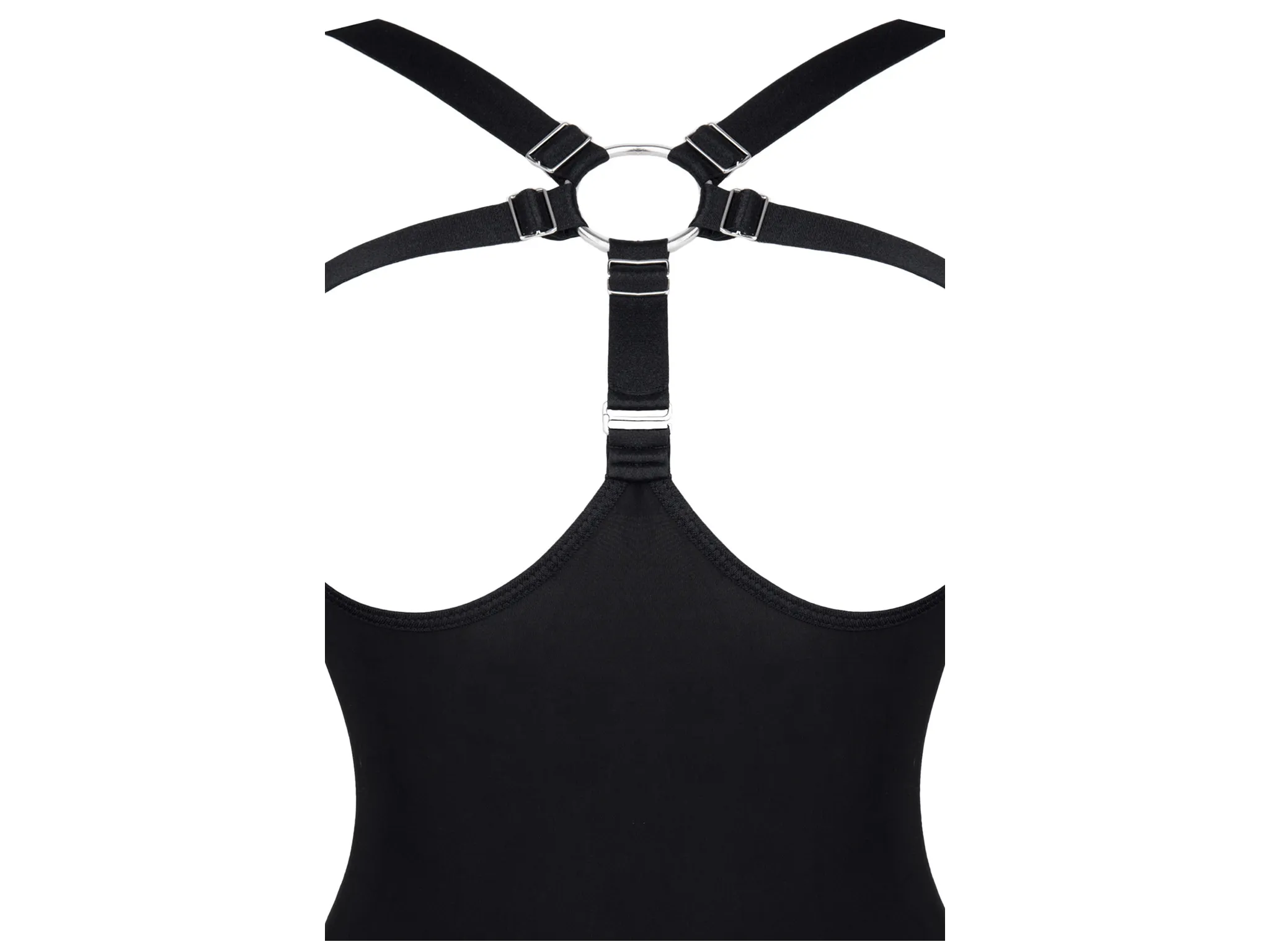Černé body s ramínky na hrudi a vysokým výstřihem, velikost S–XXL