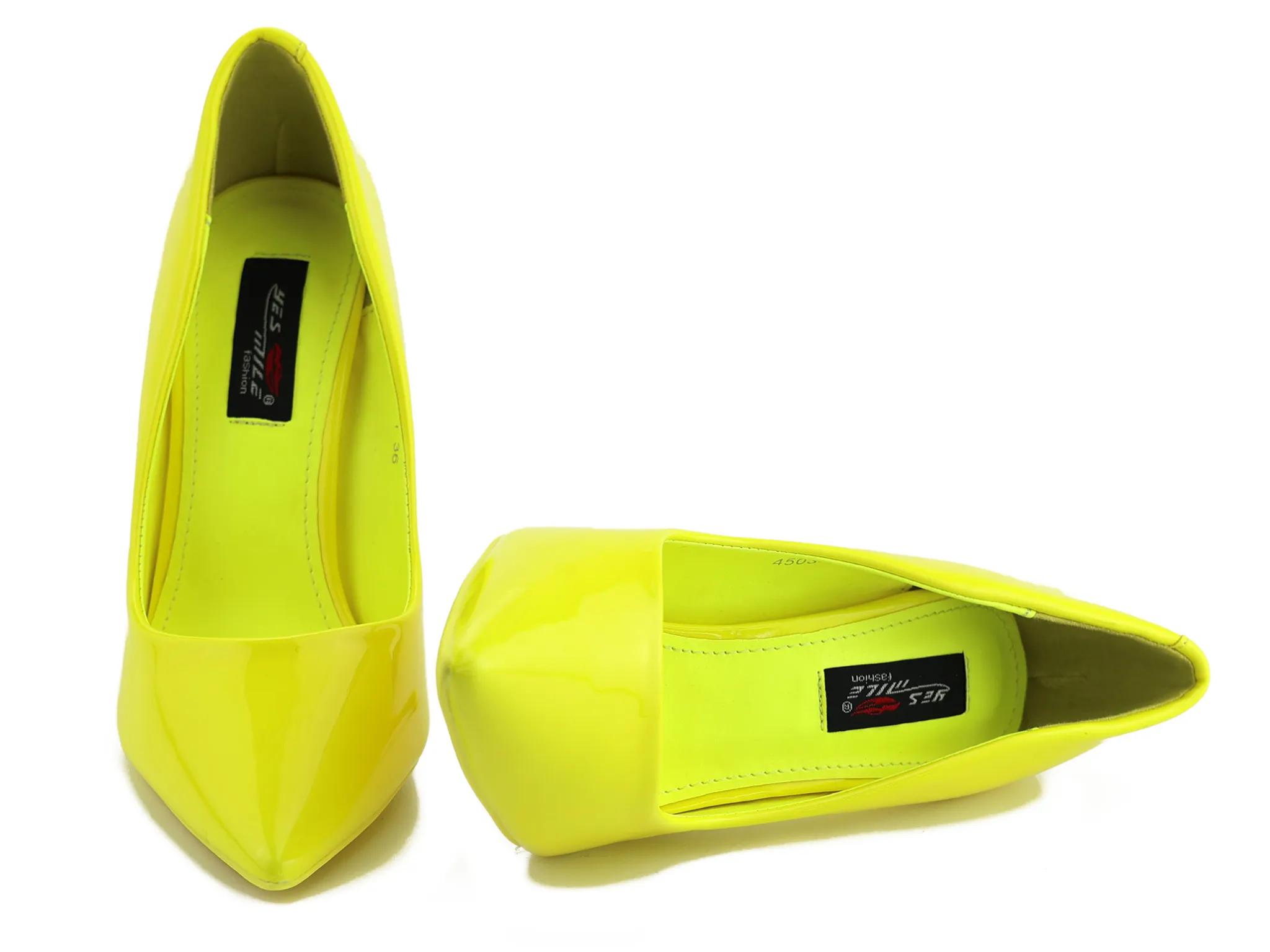 Žluté vysoké podpatky pro ženy, lakovaná kůže, ekokůže