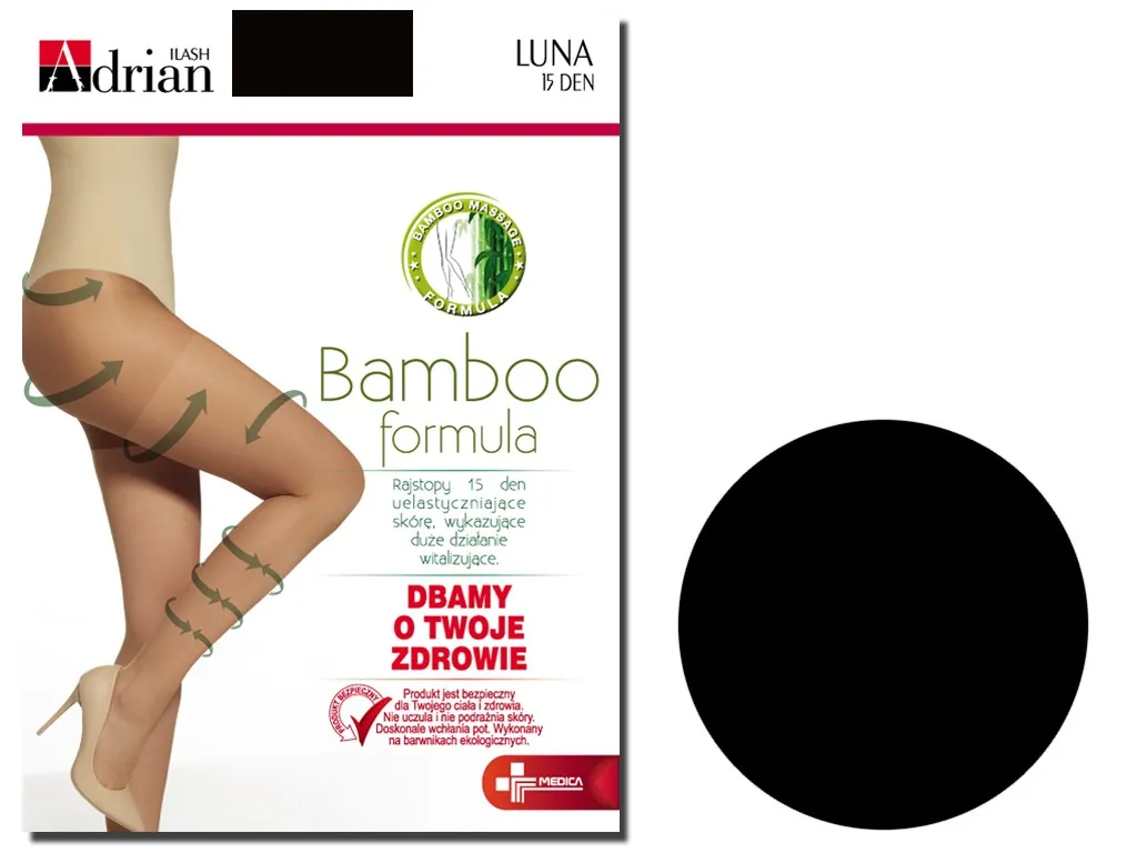 Jede Frau kennt den Moment, in dem ihre Beine mehr als nur ein elegantes Aussehen brauchen, sie brauchen auch ein wenig Verwöhnung. Die Strumpfhose LUNA 15 DEN von Adrian erfüllt die Bedürfnisse moderner Frauen, die mehr als nur ein glattes Finish wünschen. Dieses Modell wurde mit der innovativen Bamboo Formula-Technologie hergestellt, die nicht nur die Hautelastizität verbessert, sondern sie auch pflegt – eine perfekte Wahl für den Alltag, die Arbeit sowie längere Spaziergänge oder gesellige Zusammenkünfte.
