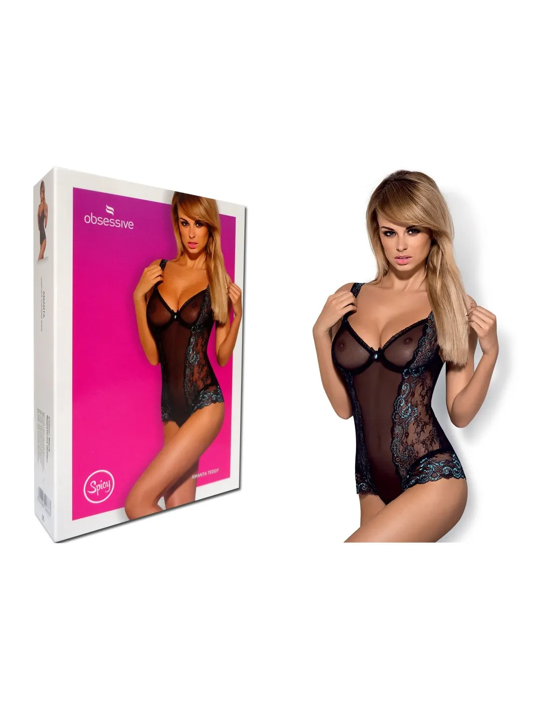 Amanta bodysuit is made of a pleasant and stretchy material, consisting of 94% polyamide and 6% elastane. This ensures that the lingerie is not only beautiful, but also comfortable to wear. Black lace bodysuit Obsessive is an extremely tempting choice that allows every woman to feel special and sensual. Make yourself happy and discover the magic of Amanta lingerie now!