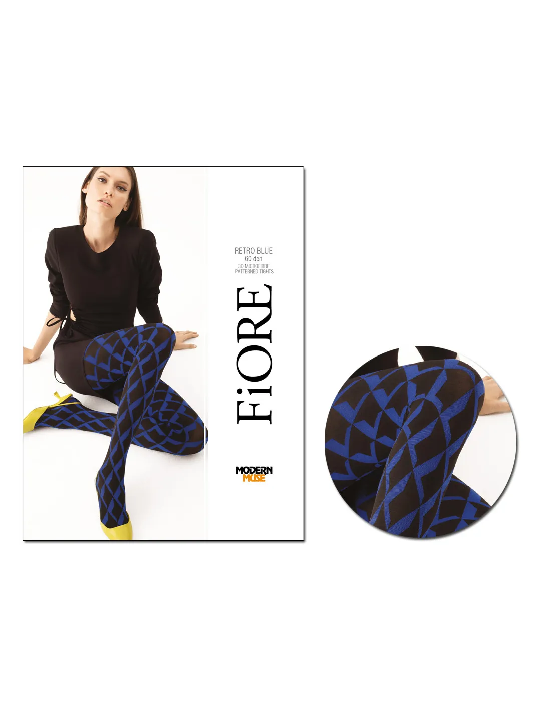 Retro Blue 60 Denier Fiore Patterned Tights – Retro Style in a Modern Form