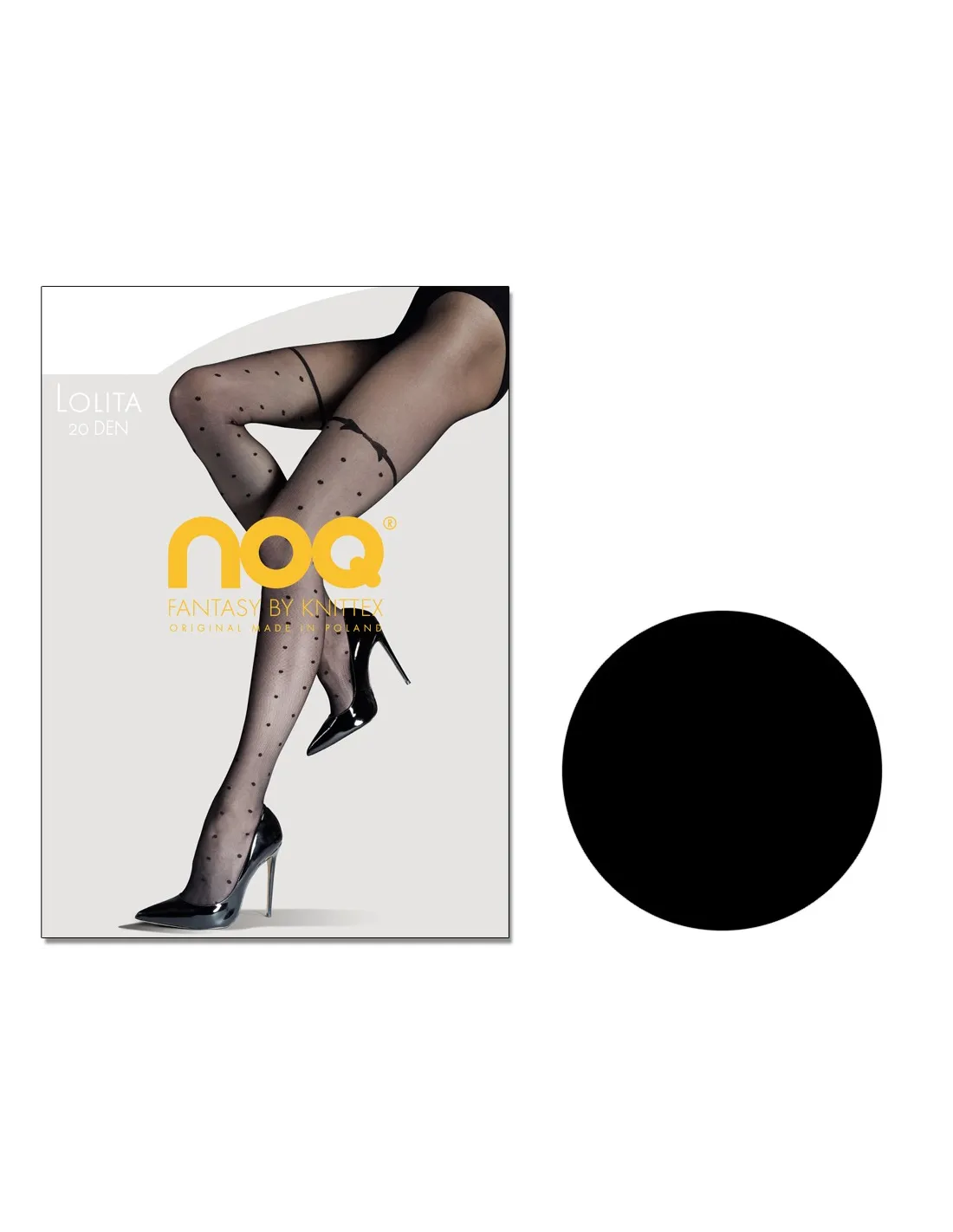 NOQ's 20-denier Lolita tights are a unique blend of sensuality, elegance, and girlish charm. Their design was created for women who want to combine a classic form with a subtle, flirtatious detail. This model imitates the look of stockings – the upper portion of the tights is visually separated by a decorative band, and the entire length of the legs is adorned with small, evenly spaced dots. The result? A graceful style that draws attention without dominating the outfit.