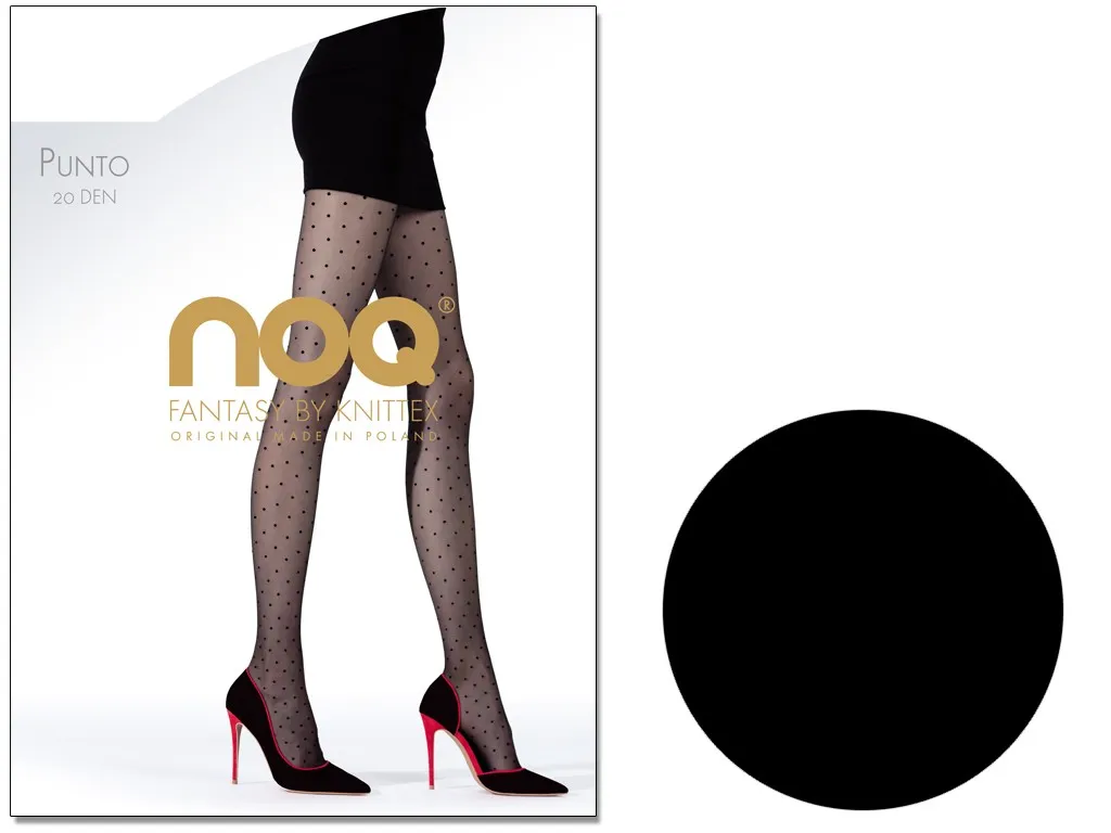 The NOQ Punto 20-denier tights stand out not only for their charming pattern, but above all for their functionality and comfort. The manufacturer offers a wide range of sizes – available from 2 to 8, allowing them to fit almost any figure. This is great news for both petite women and those who need more comfort around the waist or thighs. Regardless of size, the tights retain their properties – they fit snugly, don't roll down, and accentuate the legs without feeling tight.The material used – elastane yarn – guarantees elasticity and durability while remaining pleasant to the touch. The tights are lightweight, but not overly thin – the perfect 20 denier, which creates a lightweight feel without the risk of them getting caught on the first wear. The toe area is subtly reinforced, yet maintains a soft and aesthetically pleasing appearance – making them perfect for both closed-toe and open-toe shoes, if you're looking for a unique look.
