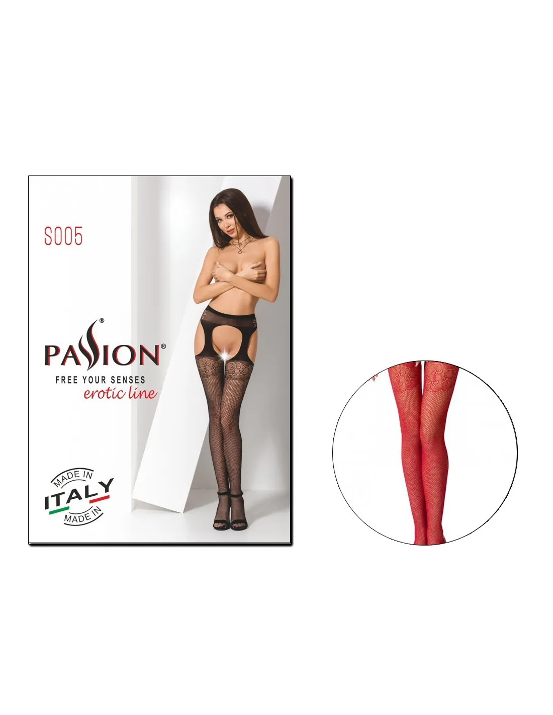 The S005 model from Passion is a great option for women looking for something unique – a combination of classic tights with an elegant waistband and decorative thigh trim. The dominant red color in this design adds energy and character, but in a subtle, understated way. It's a bolder alternative to black, perfect for everyday wear and more formal outfits.