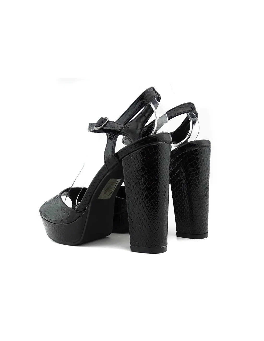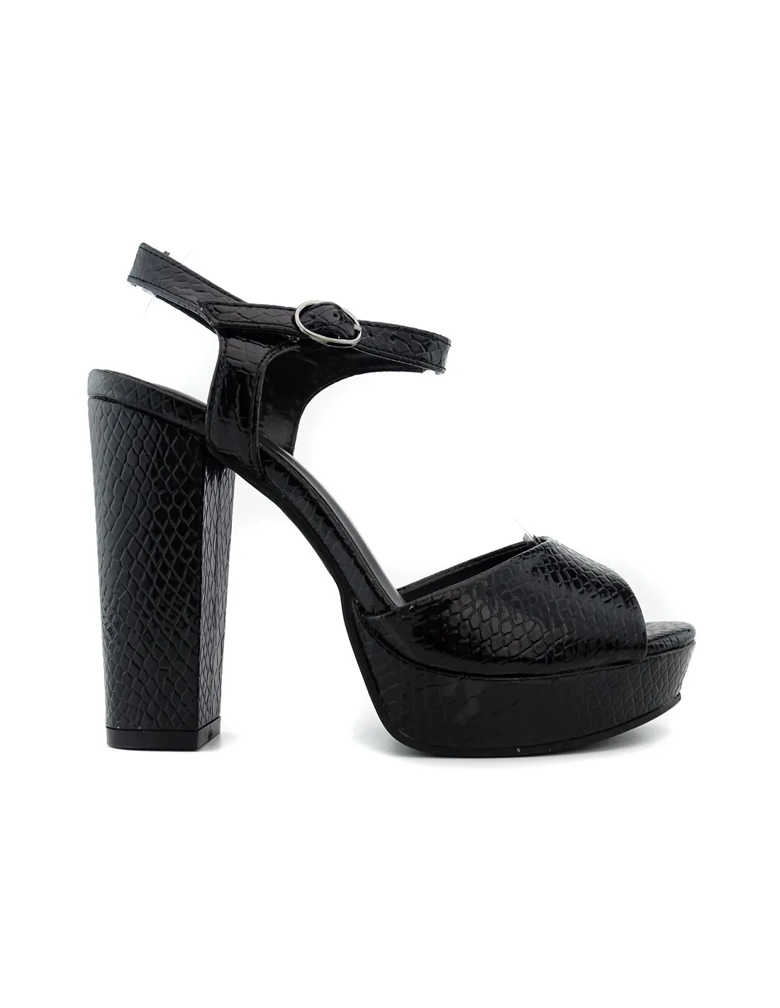 Black eco leather sandals are a fashionable choice for summer. Their delicate texture, reminiscent of snake skin, gives them an elegant character. The sandals have a platform under the toes with a height of 3 cm, which provides comfort and convenience. In turn, the 12 cm high stiletto heel adds a few extra inches of height to a woman, while beautifully emphasizing the legs.