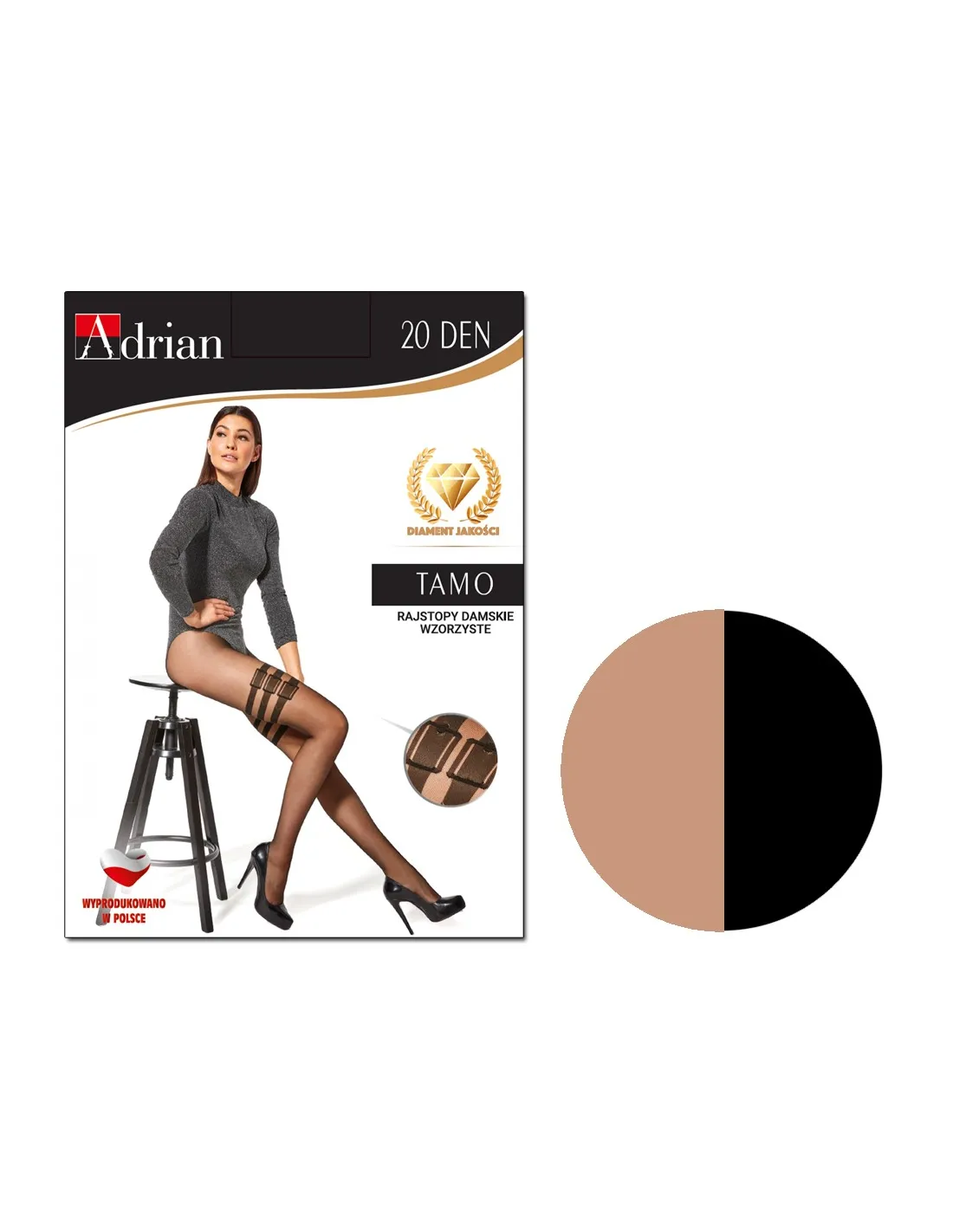 Stocking-like tights with a pattern on the thigh TAMO 20 den Adrian – sensual tights for women who want to stand out with style