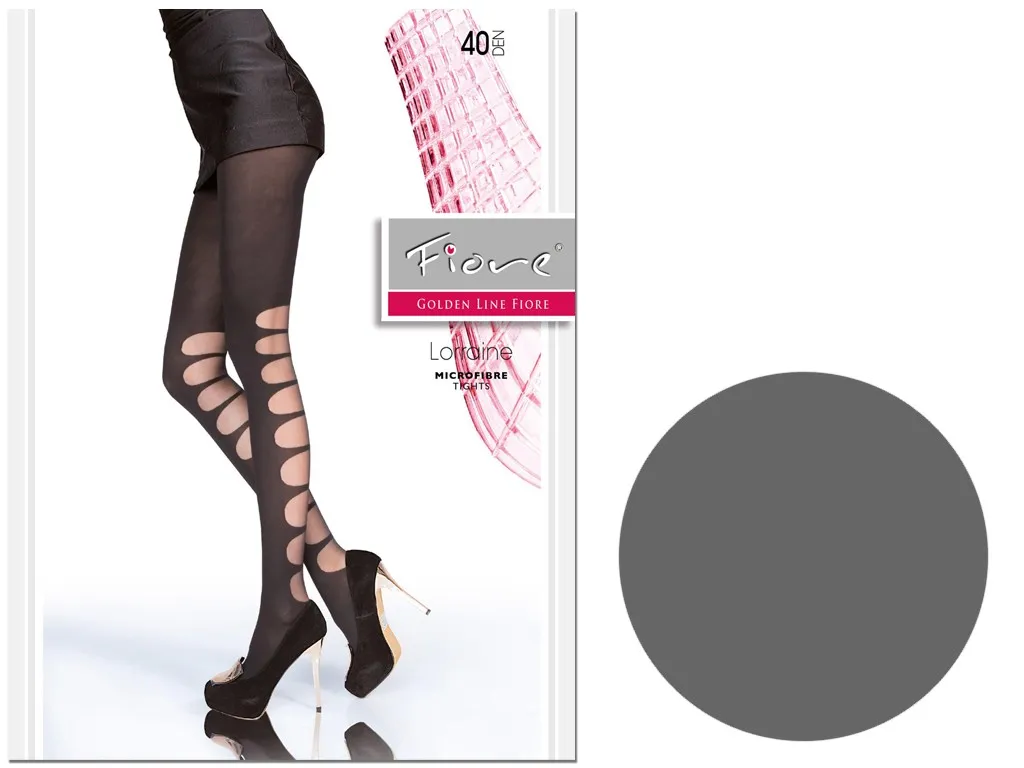 Ieškote pėdkelnių, kurios išties išsiskirtų ir suteiktų jūsų aprangai modernumo ir mados? „ Fiore “ LORRAINE 40 DEN pėdkelnės puikiai tiks moterims, kurios nebijo ryškesnių akcentų ir mėgsta akį traukiančius aksesuarus. Šios raštuotos mikropluošto pėdkelnės sukurtos taip, kad atrodytų lyg būtų papuoštos iškirptėmis – išskirtinis „iškirpčių“ raštas šonuose sukuria dekoratyvinį tinklelio efektą, einantį nuo šlaunų iki kulkšnių.