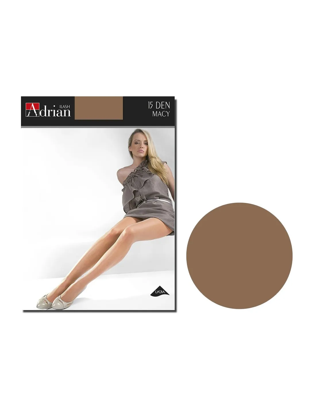 MACY 15 DEN modelis ir ikdienas elegances kvintesence – neuzbāzīgs, tomēr pārsteidzošs, radīts sievietēm, kurām nepieciešami uzticami aksesuāri, kas papildina viņu tērpu. Plānā, daļēji caurspīdīgā struktūra ļauj ādai elpot un piešķir kājām dabisku izskatu, vienlaikus tās maigi izlīdzinot un vizuāli izlīdzinot to toni. Tas ir ideāls risinājums siltākām dienām, kad vēlaties izskatīties eleganti, bet nevēlaties, lai materiāla smagums spiestos pie ādas.