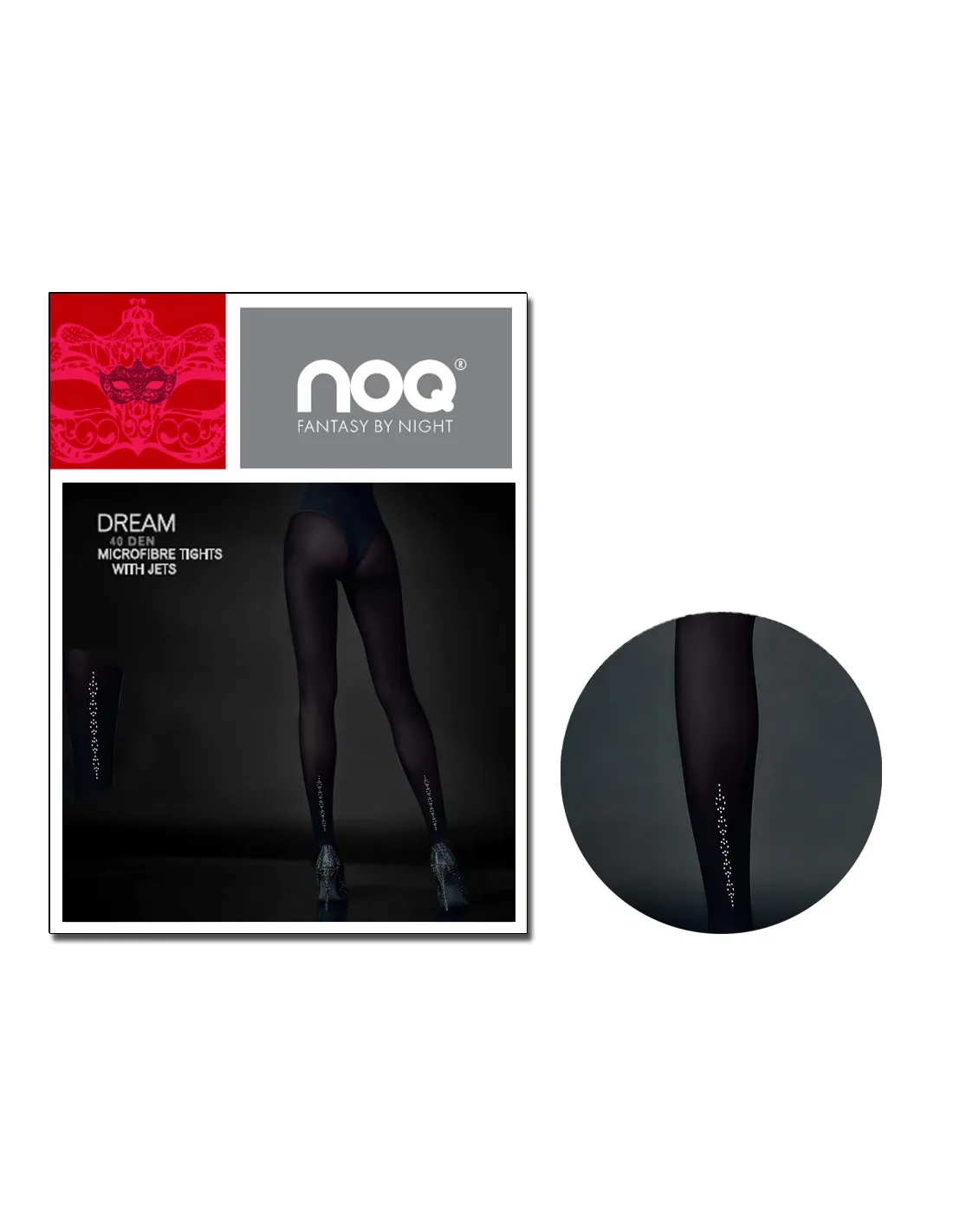 Melnas mikrošķiedras zeķubikses ar mākslīgajiem dārgakmeņiem DREAM 40 denjē – žilbinošs spīdums jūsu kājām