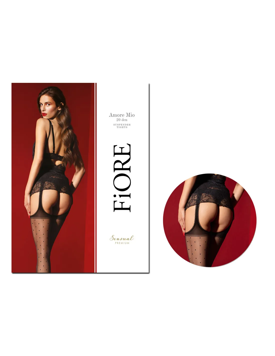 Ciorapi plasă cu buline și curea din dantelă – Fiore AMORE MIO 20 den