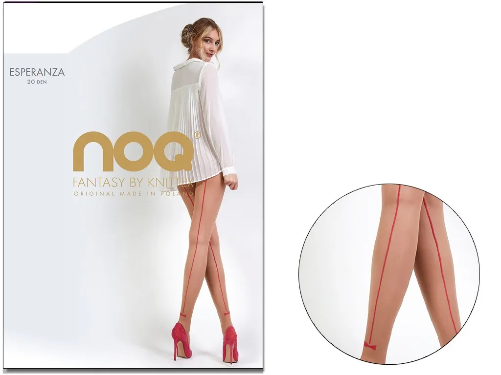 Vzorované pančuchy NOQ Esperanza – módny šev a mašľa v 20-denovej verzii