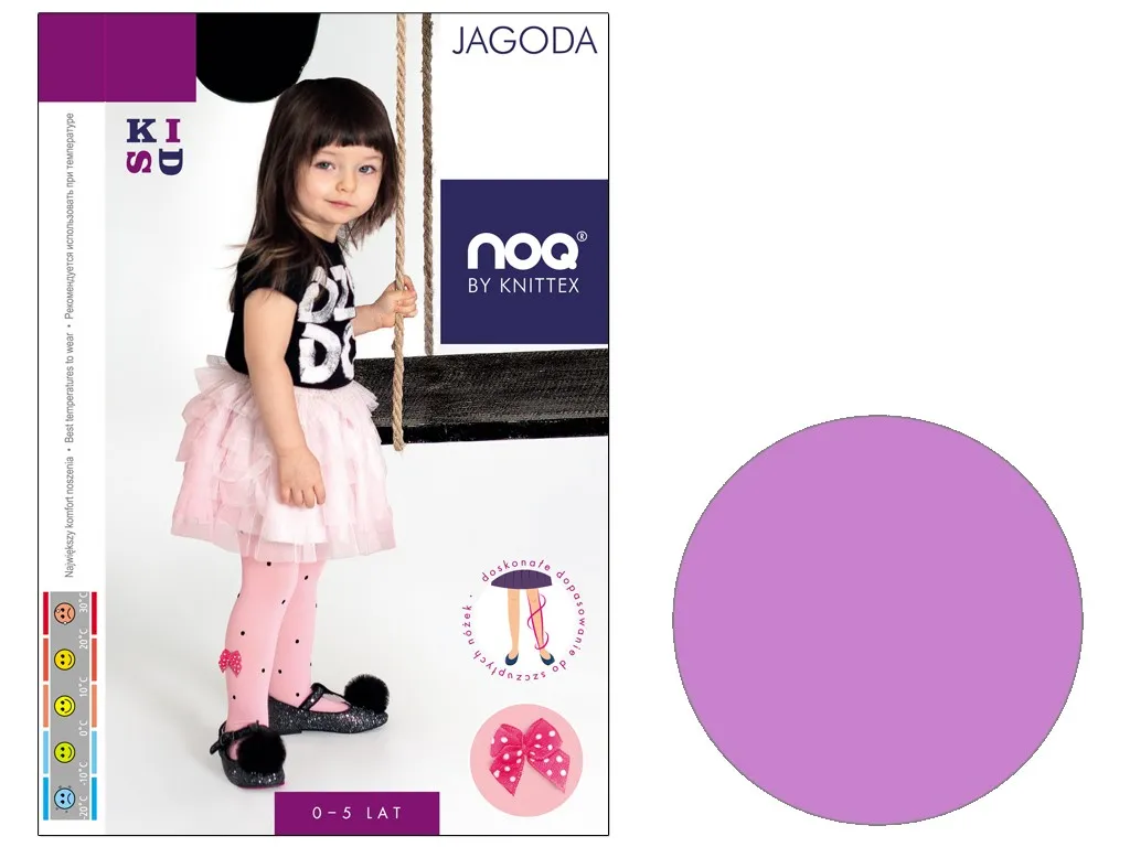 Колготки JAGODA щільністю 40 деньє були створені для дівчаток віком від 0 до 5 років. Зараз комфорт такий же важливий, як і естетика, тому NOQ by Knittex обрала мікрофібру, яка забезпечує м'яку текстуру ніжної шкіри малюка, не подразнюючи її. Колготки мають матове покриття без блиску, що надає їм універсальності — ідеально підходять як для щоденного носіння, так і для більш офіційних випадків, таких як дні народження, вечірки чи вистави для дошкільнят.